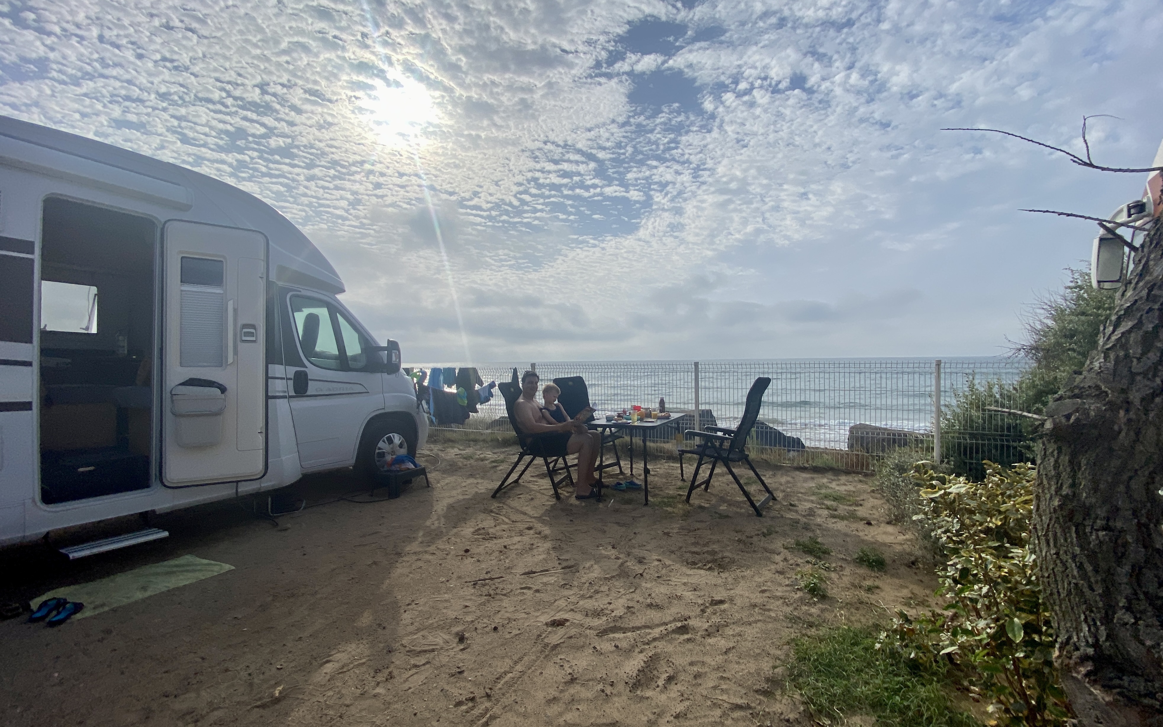 Pünktlich ins Bett gehen war heute nicht angesagt. Ein Gewitter zog auf und es blitzte und stürmte. Wir in der ersten Reihe hatten natürlich alles voll abbekommen 🙈