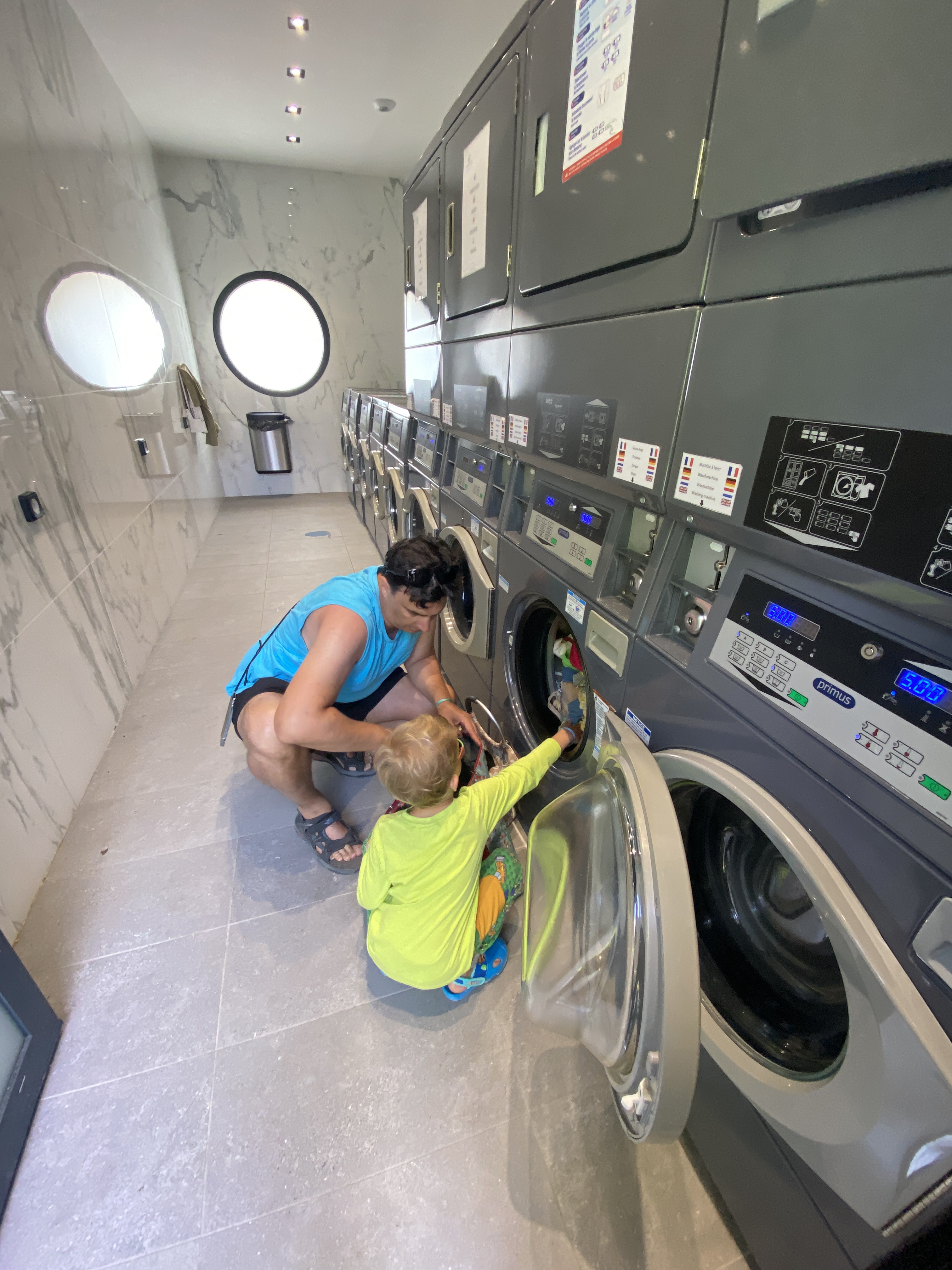 Danach wurde endlich die muffige Wäsche der letzten Tage gewaschen 😅 5€ ein Waschgang, naja. Die Zeit wurde auf dem Spielplatz überbrückt. Da es ja sehr windig und sonnig war, haben wir uns später gegen den 5€-Trockner entschieden und haben das Trocknen der Sonne überlassen 💪🏼 ☀️
