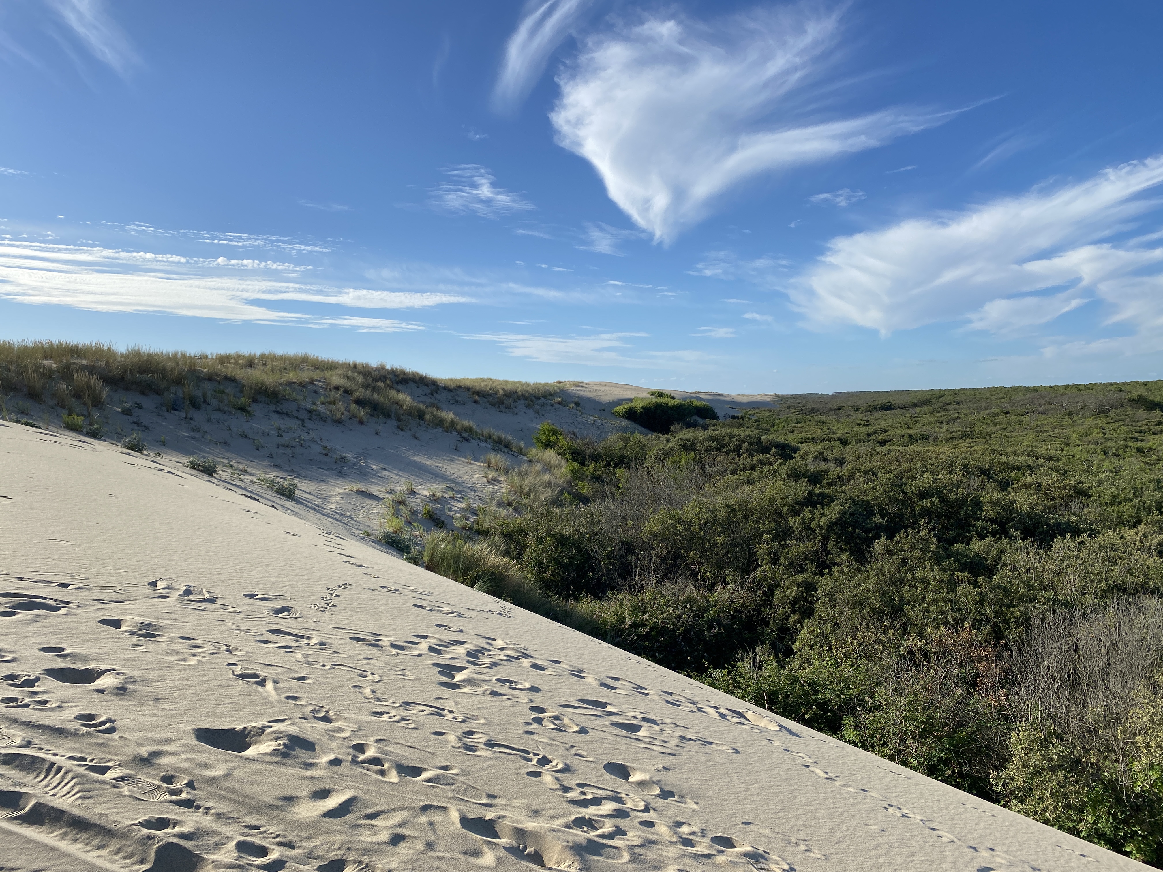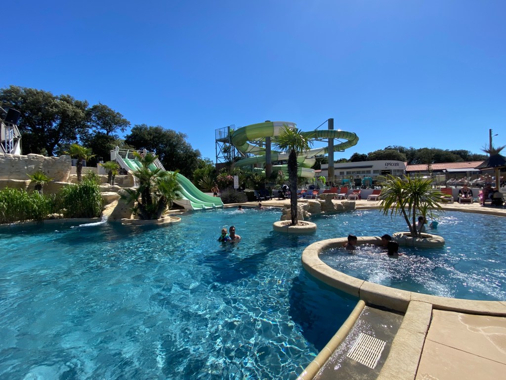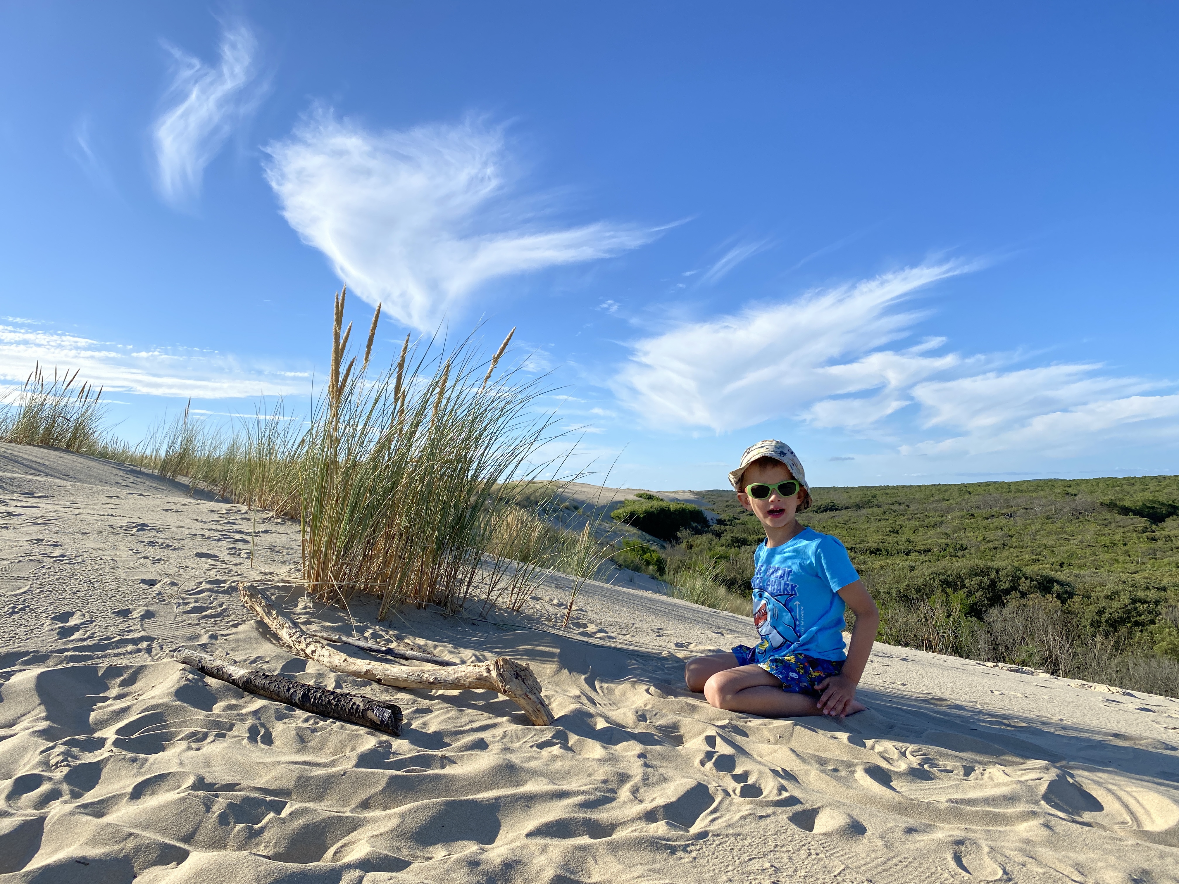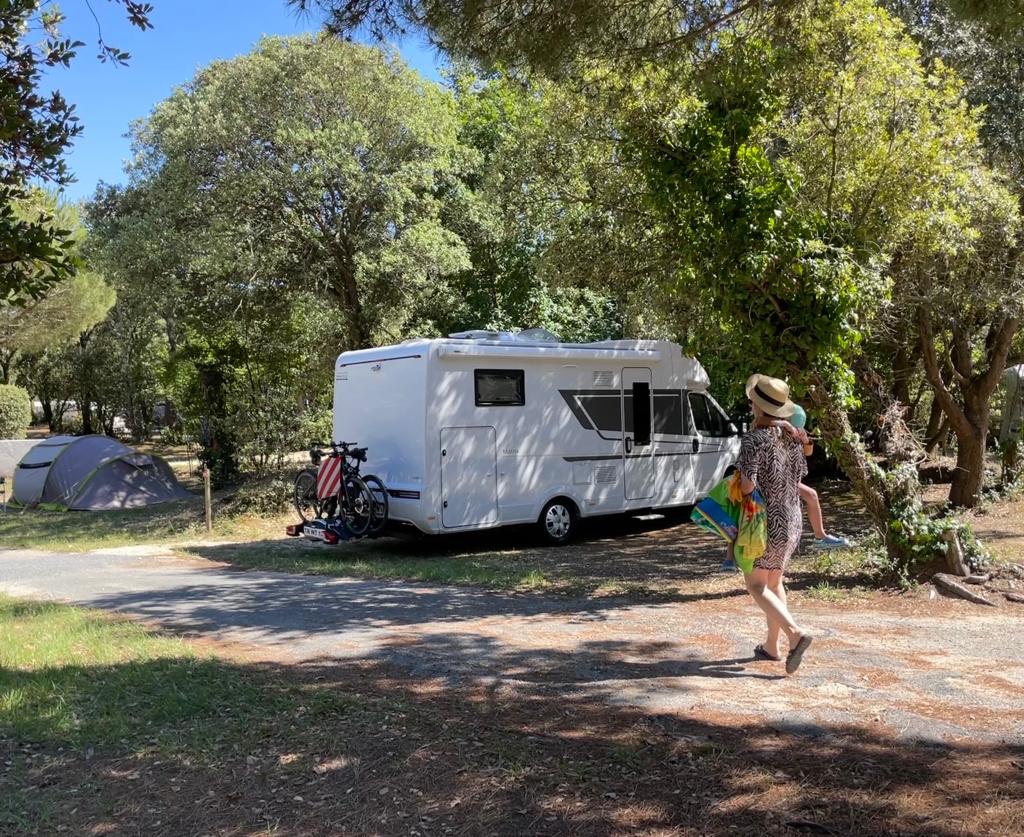 Für größere Womos war das Gelände etwas knifflig zu Befahren, aber es klappte. Wir hatten nur einen Platz weiter hinten im Wäldchen mit Mini-Meerblick, aber das war nicht schlimm.