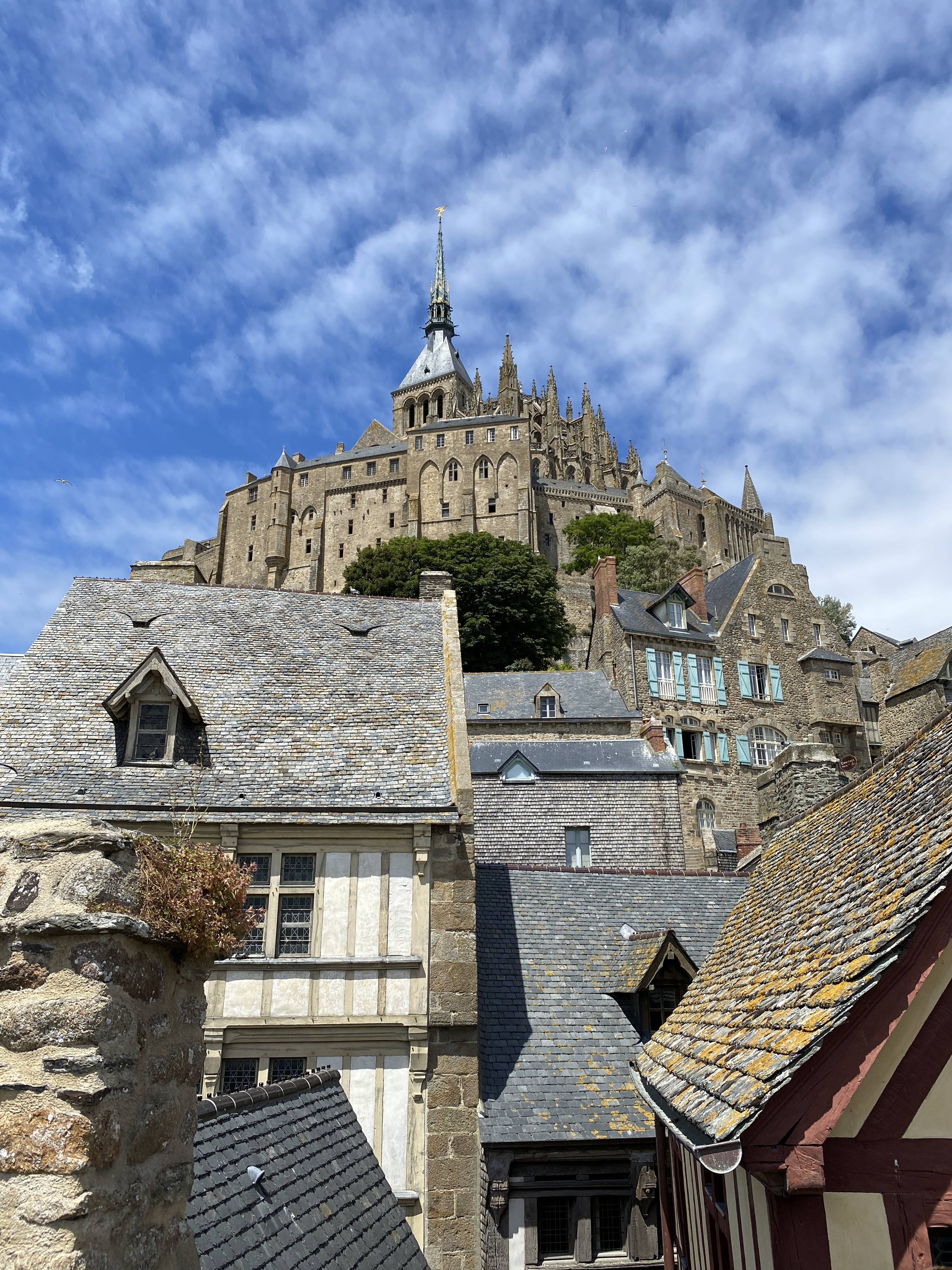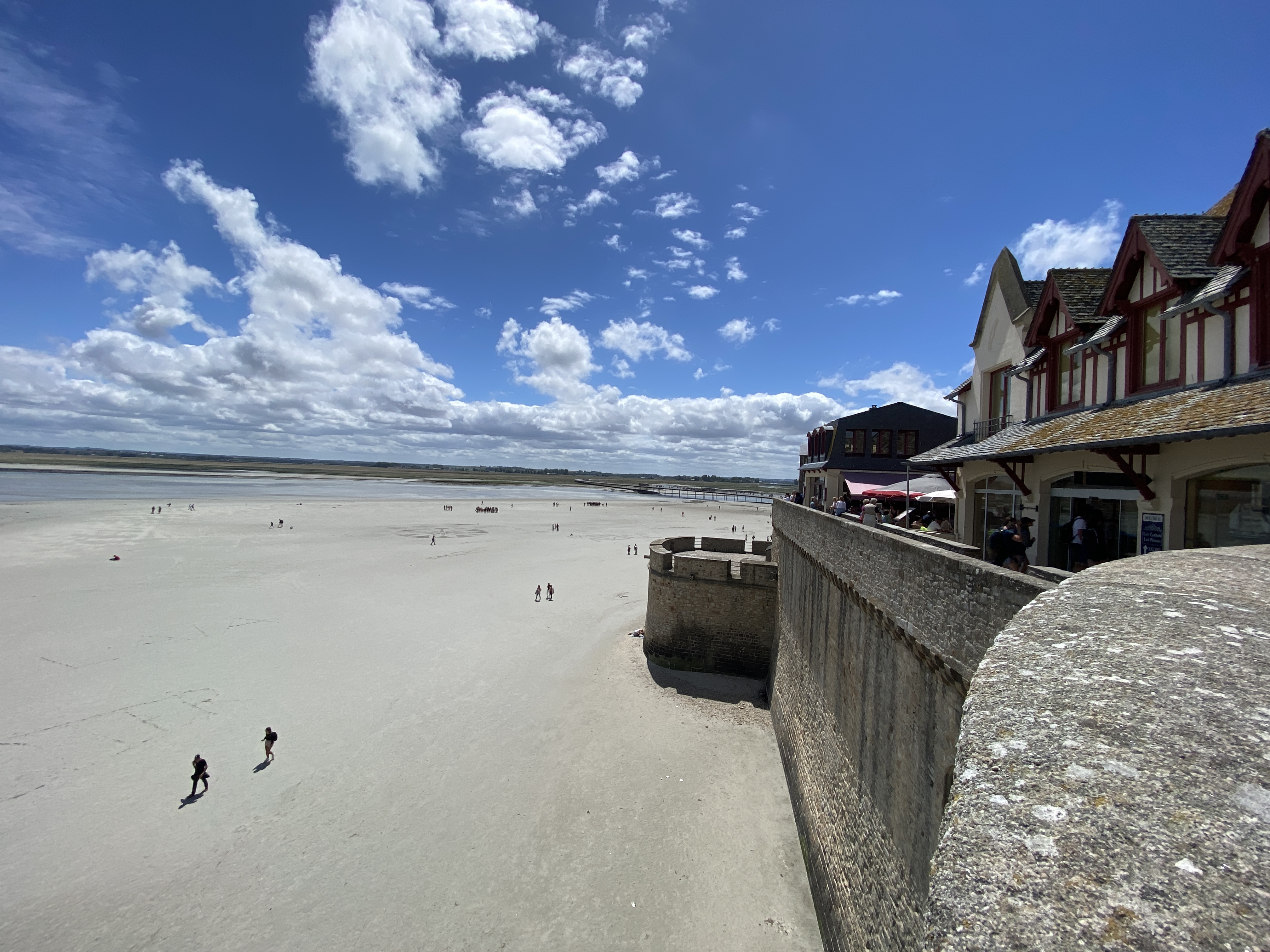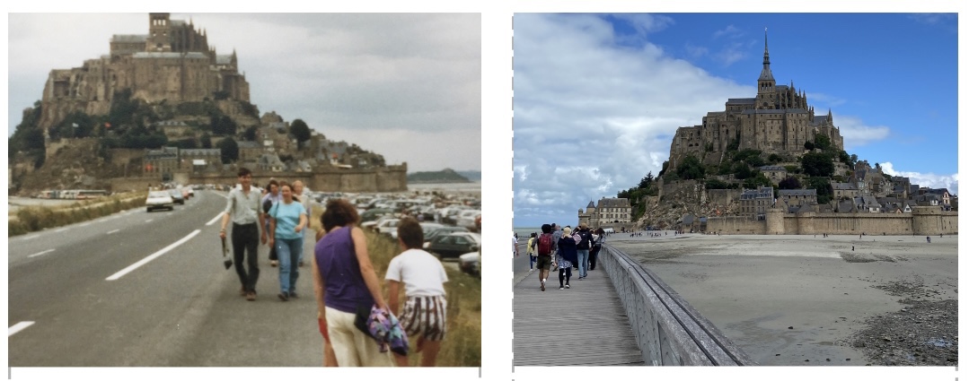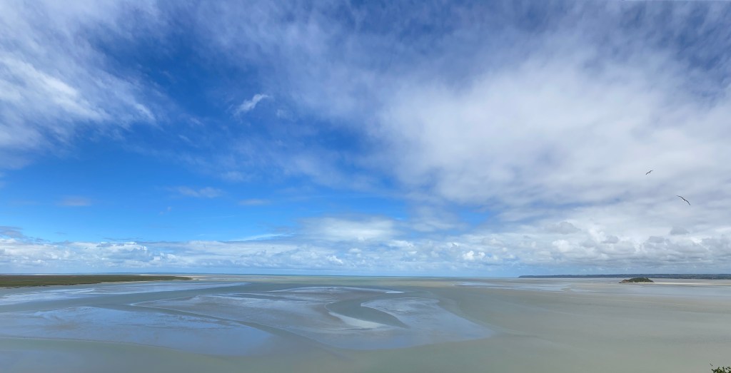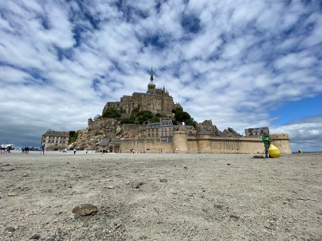 Um 12:00 hatten wir nämlich eine Tour zum Mont St. Michel gebucht. Zum Glück war es nur ca. 1 Std Fahrt. Zuvor mussten wir aber noch einen Supermarkt suchen, da Martins Handy wohl doch zu viel Wasser abbekommen hatte und sich nicht mehr normal aufladen lies. Alternative war so ein Induktionsauflade-Pad. Und tatsächlich wir hatten einen Carrefur gefunden. Und es gab noch in Restposten ein Gerät für 2,50€!!! Glück muss man haben 🤣