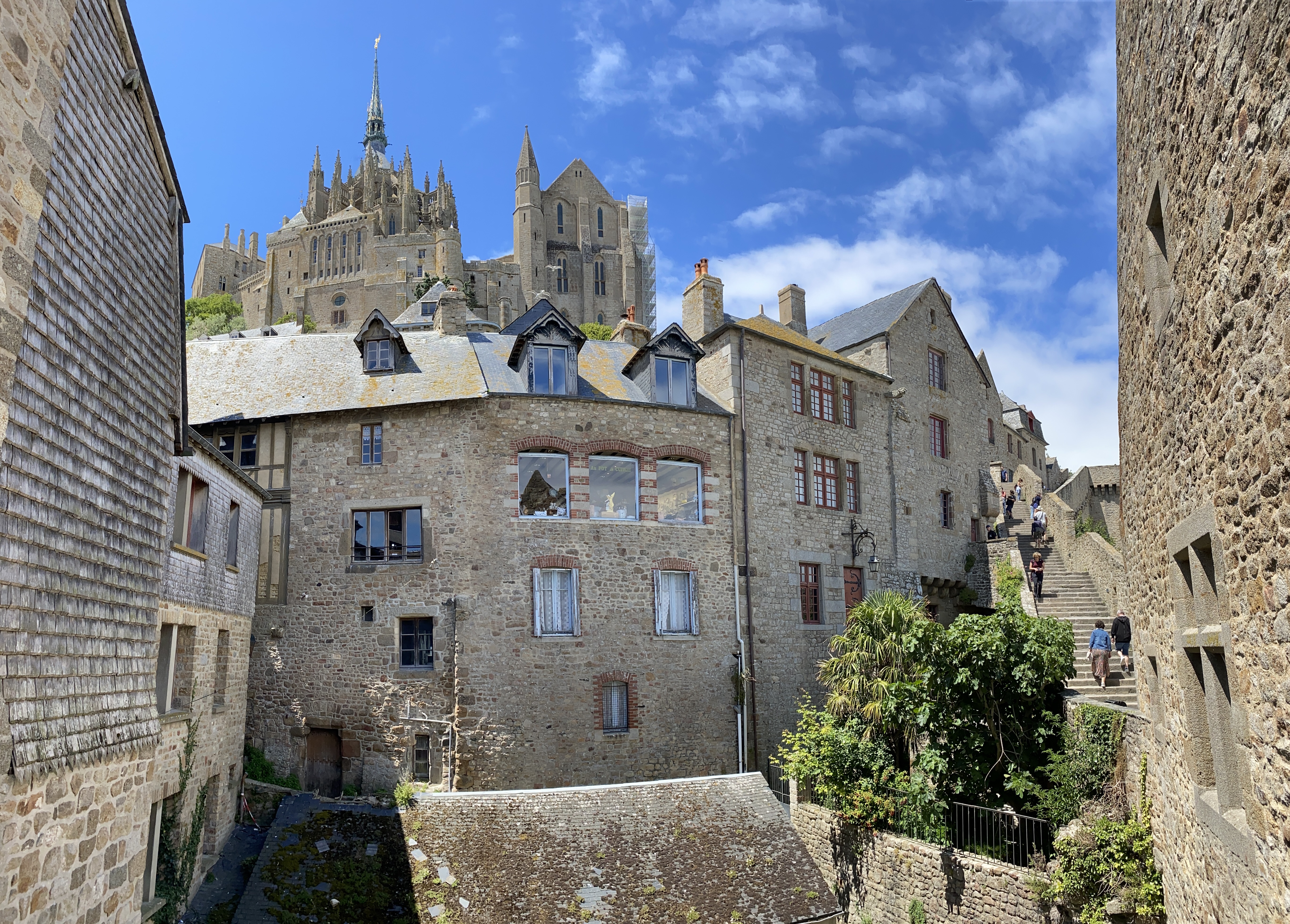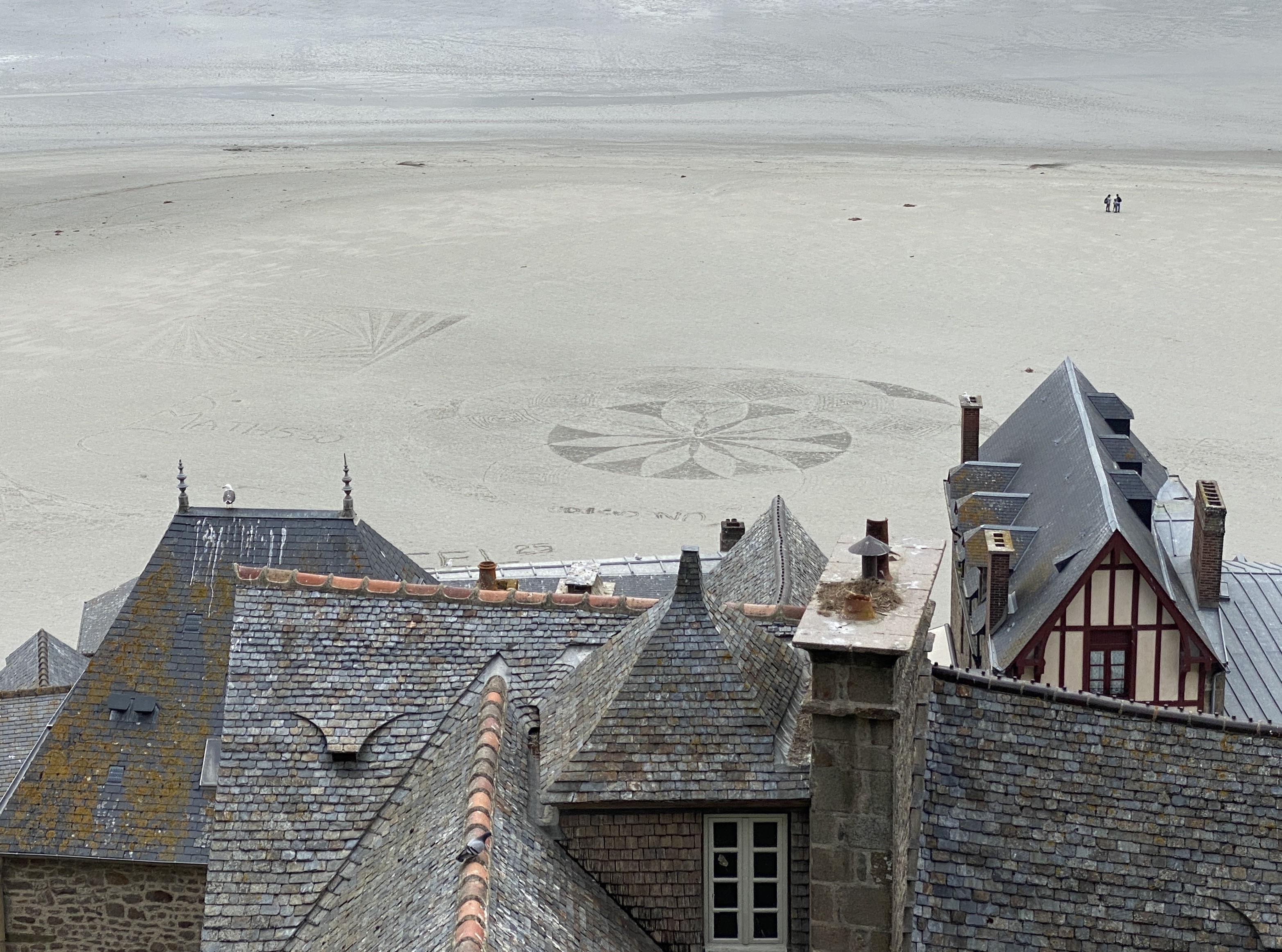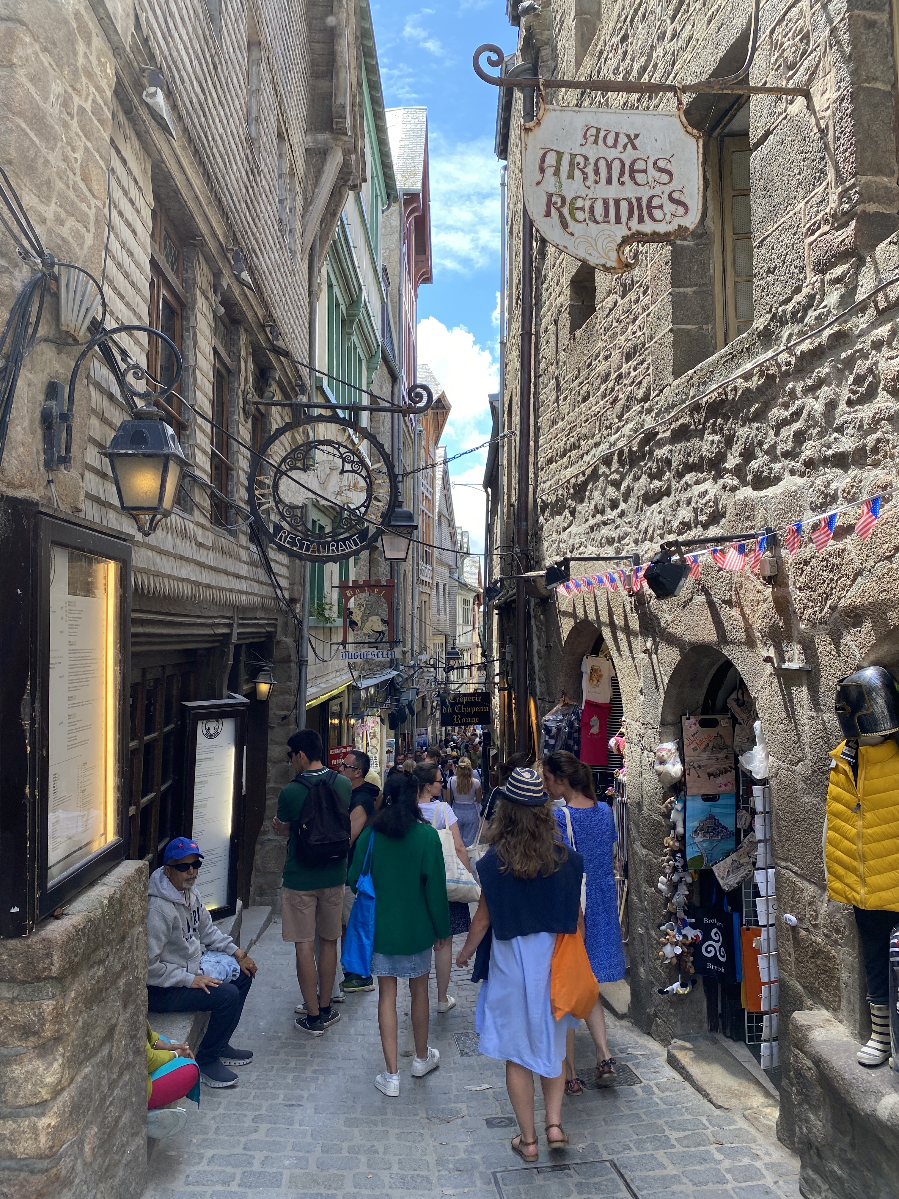 Um 12:00 hatten wir nämlich eine Tour zum Mont St. Michel gebucht. Zum Glück war es nur ca. 1 Std Fahrt. Zuvor mussten wir aber noch einen Supermarkt suchen, da Martins Handy wohl doch zu viel Wasser abbekommen hatte und sich nicht mehr normal aufladen lies. Alternative war so ein Induktionsauflade-Pad. Und tatsächlich wir hatten einen Carrefur gefunden. Und es gab noch in Restposten ein Gerät für 2,50€!!! Glück muss man haben 🤣